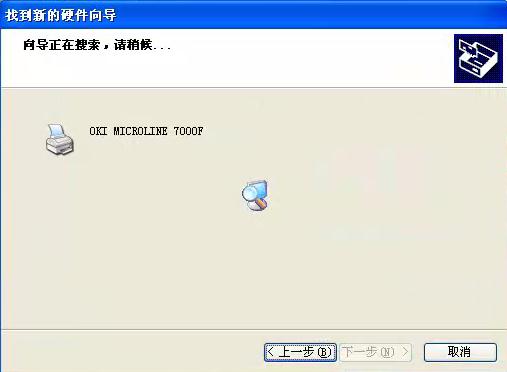 1 将打印机的USB线与电脑连接,连接后电脑会提示找到 OKI MICROLINE 7000F 打印机的提示框(如下图:)