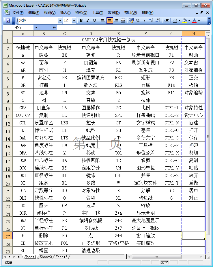 CAD2014常用快捷键一览表预览图
