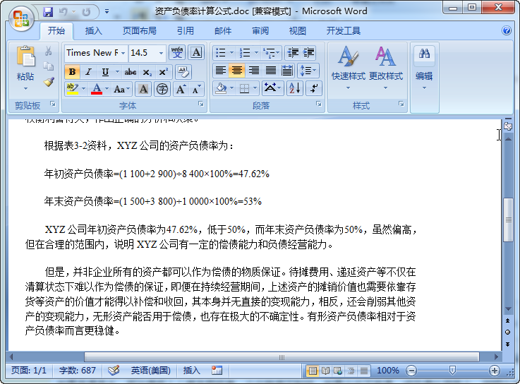 资产负债率计算公式模板简介