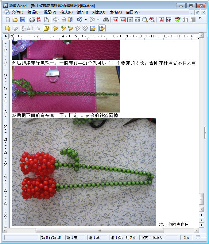 想亲手制作一份玫瑰花串珠吗?想知道手工玫瑰花串珠是怎么做成的吗?——如果你真的想学或是对制作手工玫瑰花串珠超感兴趣的话,那么就来看看这份由东坡小编最新整理带来的doc格式word版配有超详细图解的手工玫瑰花串珠教程吧!快亲手制作一份手工玫瑰花串珠送给你最亲爱的TA吧!