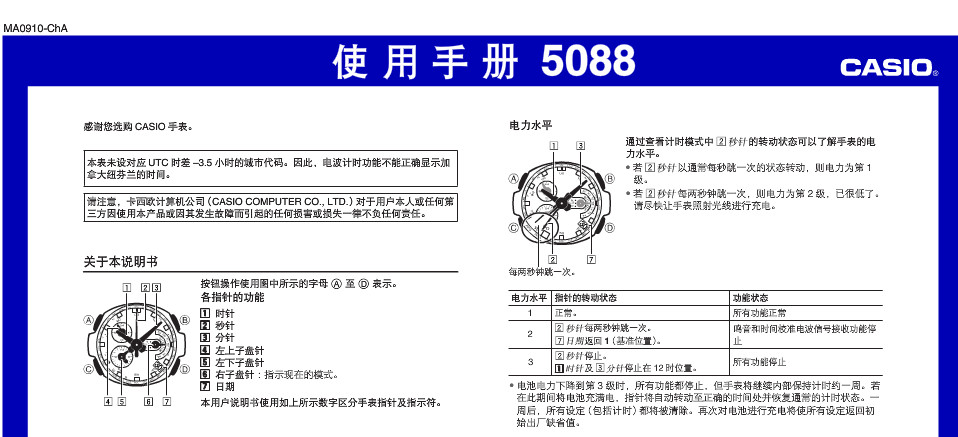 卡西欧手表MTG-1100使用说明书预览