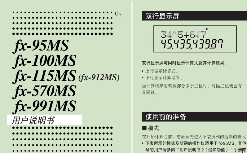 你正在看的是“卡西欧计算器fx_95MS使用说明书。”。PDF格式文档,确定你已经安装了pdf阅读器,如果尚未安装阅读器,请下载 Adobe Reader简体中文版 或者 福昕pdf阅读器 并安装后方可阅读。