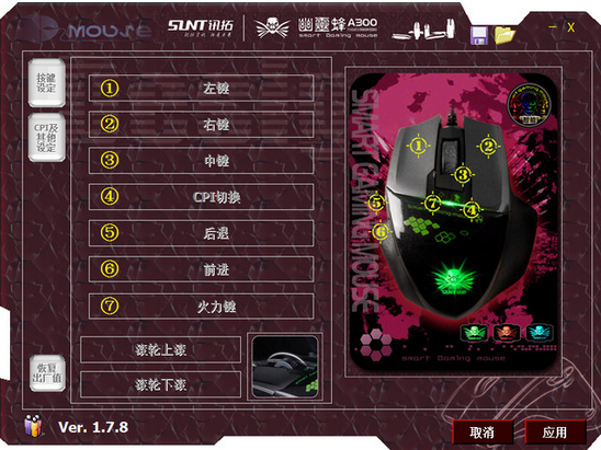 讯拓幽灵蜂a300游戏鼠标驱动目前来说唯一的适合幽灵蜂A300鼠标的驱动软件,大家能够通过来正常应用鼠标,特别是能够获得对鼠标DPI、回报率、特殊按键等进行调节。喜欢的话都可以进行快速下载!