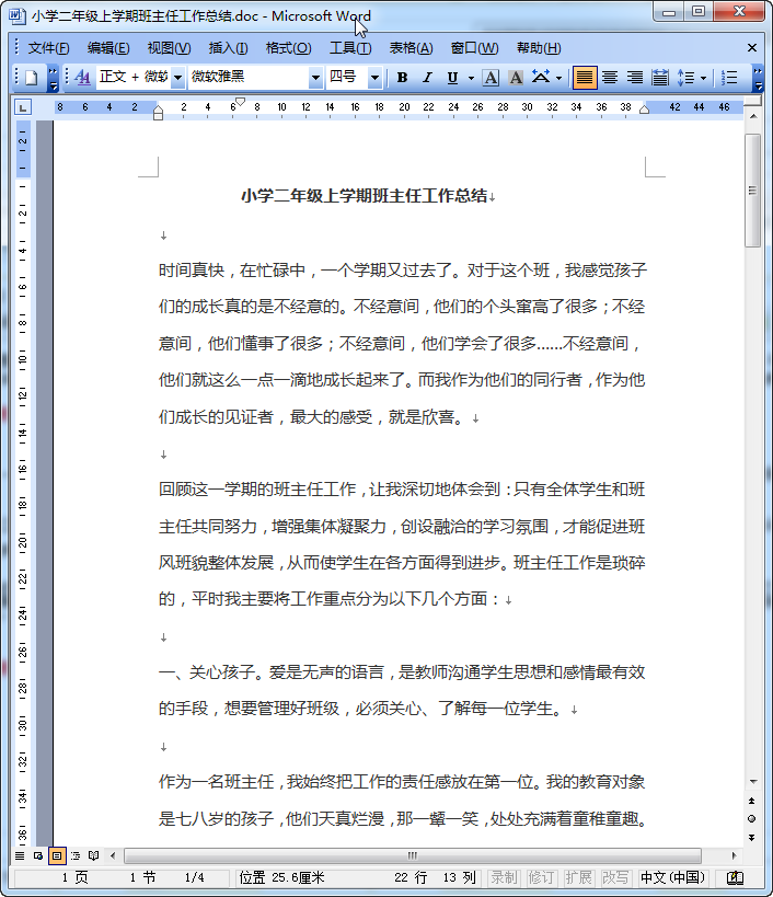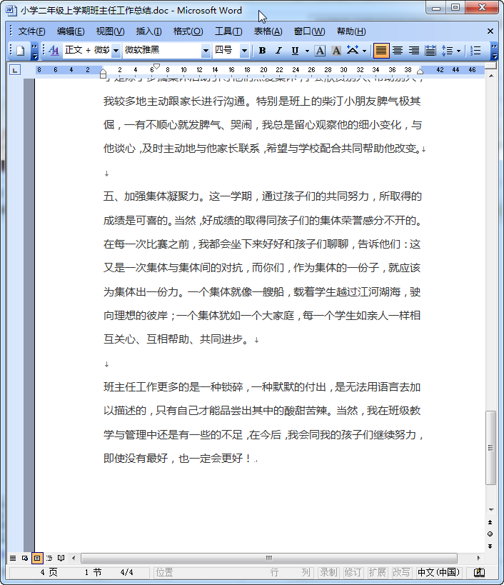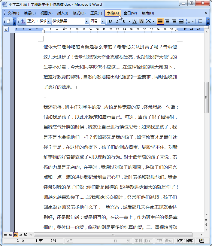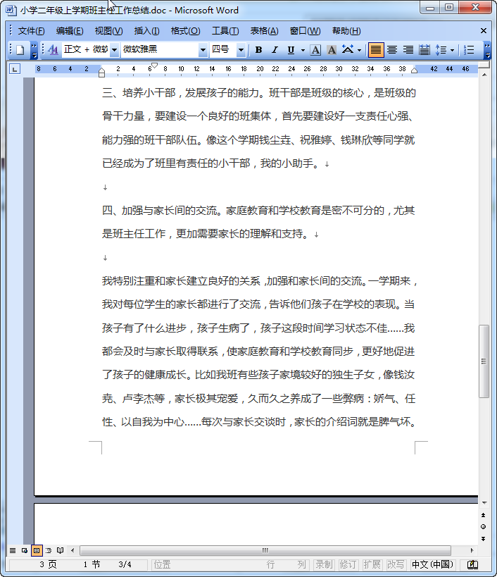 小学二年级上学期班主任工作总结内容摘要
