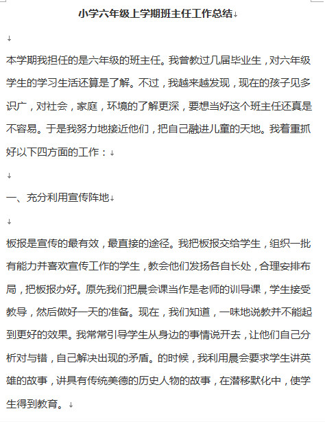 2015已经步入尾声,老师门都开始准备个人的工作总结了,这里我们东坡下载为大家准备了这篇小学六年级上学期班主任工作总结大全,内容制作比较精细,有需要该总结的老师的可以来我们这里下载这篇小学六年级班主任工作总结,免费的下载服务等着你噢!