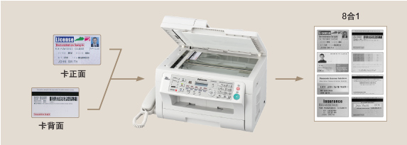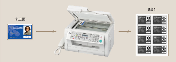 可连续复印一或多张身份证或名片的的两面,然后以2合1、4合1或8合1格式打印到单一纸张上。这一功能可以减少纸张消耗并简化信息管理。