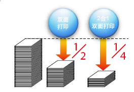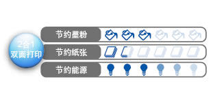 2 合 1 双面打印功能,可以节省大量的耗材。削减纸张消耗量达75%,同时墨粉消耗量也大大减少了。打印机工作的时间也减少,从而节约了用电成本。