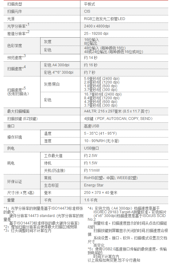 佳能CanoScan LiDE120 扫描仪参数