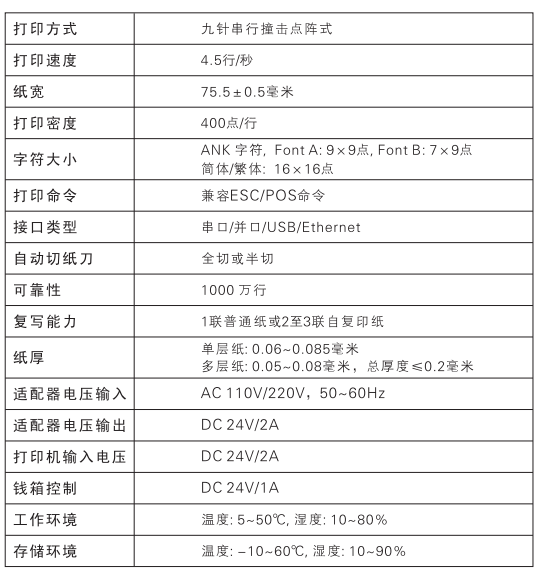 Aibao爱宝BP-75 针式票据打印机技术参数