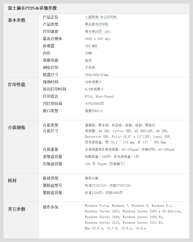富士施乐P225db详细参数