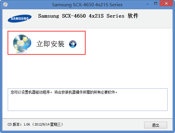 1、下载并运行三星SCX4650扫描仪驱动,选择【立即安装】