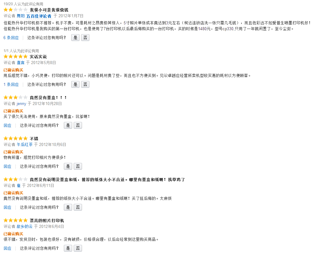 佳能CP800打印机用户点评信息