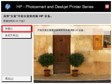2、在“HP - Photosmart and Deskjet Printer Series”窗口中,点击“安装”按钮。如图 1 安装所示: