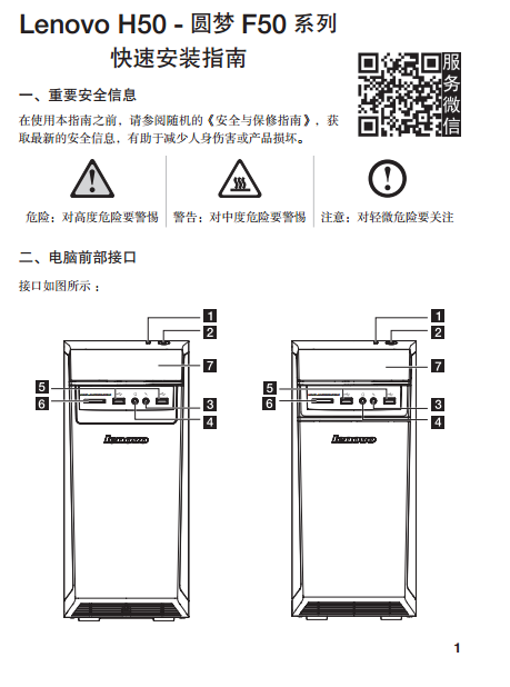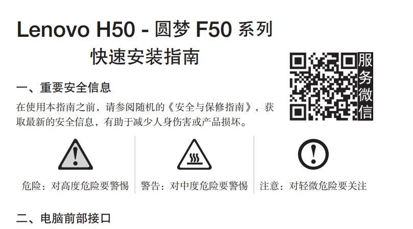小编在这里给大家带来的是联想Lenovo H50-圆梦F50(H5000)系列快速安装指南,文档详细介绍了联想圆梦F50(H5000)装说明以及接口说明,有需要的朋友可以下载。