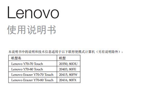 Lenovo Y70-70 Y70-80Touch说明书目录