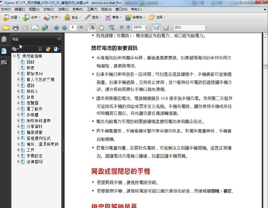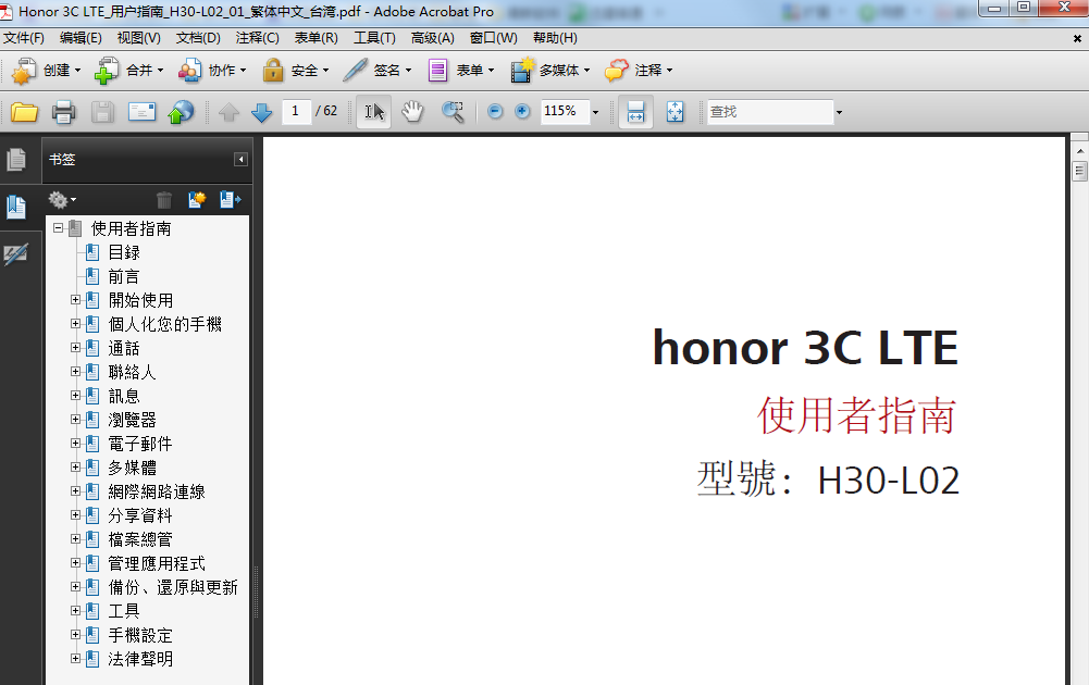 华为荣耀3clte(H30-L02)繁体使用说明书介绍