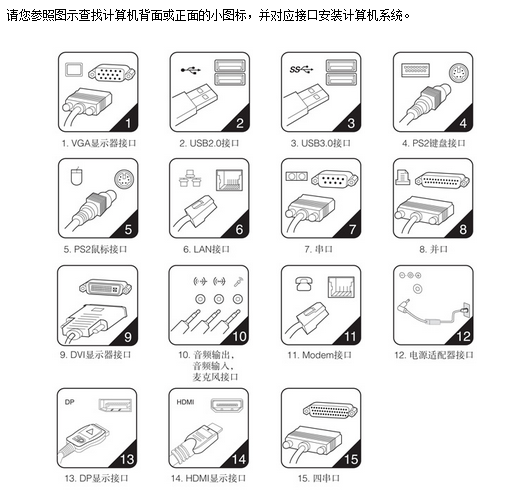 2. 接口的布局和方向可能同图例有所不同,但这并不影响您安装计算机。