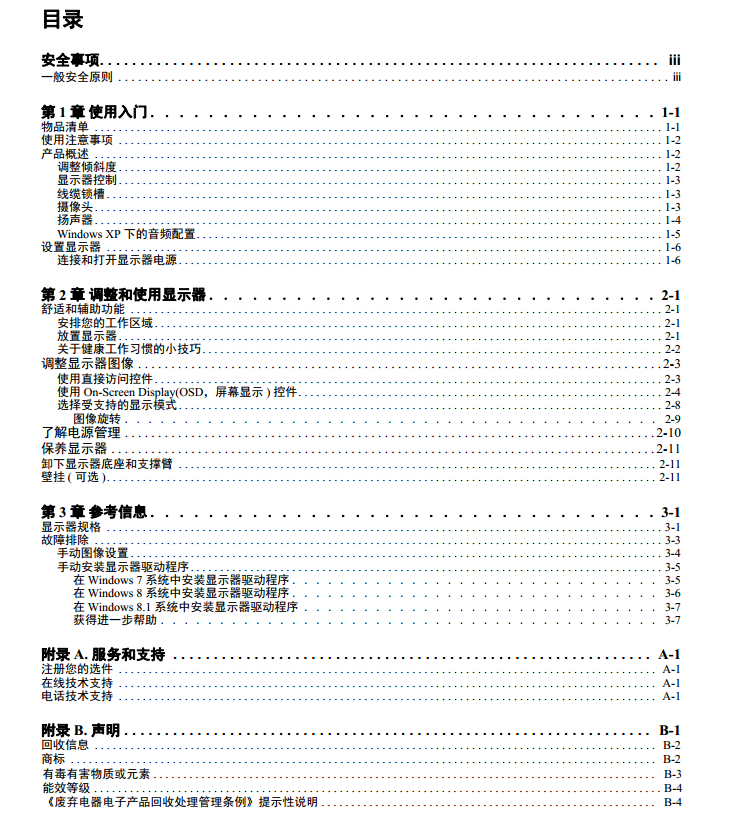 联想LI2821wA说明书目录