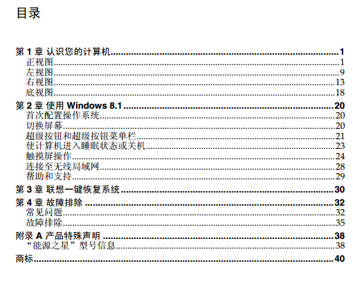 联想Flex 2-14 2-14D说明书目录