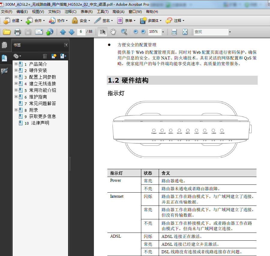 华为hg532e用户指南目录