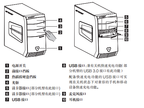 联想Erazer T4电脑前部接口
