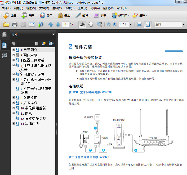 华为ws328拥有两根天线,信号强度强,支持WPS一键加密功能,外观做的非常漂亮,价格适宜。以下文档是华为ws328无线路由器用户指南,希望能岛主大家更好安装使用。