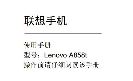 联想A858T手机配备了5英寸720P分辨率的IPS屏幕,内存为1G RAM与8G ROM,前500万后800万像素双摄像头,运行Android 4.44系统,这里给大家带来的是联想A858t使用说明书,有需要的朋友可以下载联想A858t说明书查阅详细的内容。