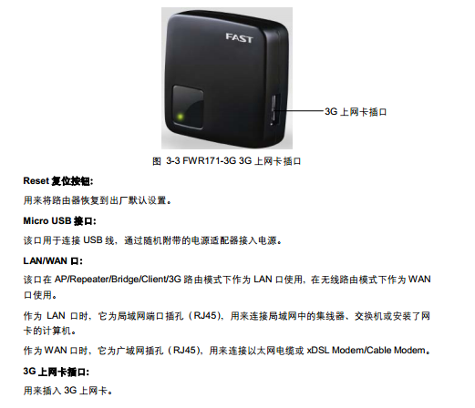 第五章:3G路由模式和无线路由模式配置指南。介绍路由器在3G路由模式和无线路由模式时的