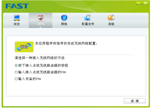 如果您想要快速接入无线网络,点击WPS按钮,将有三种方法供您选择。