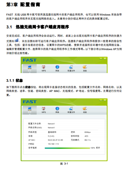 迅捷FW300U使用说明书(无线网卡配置)介绍