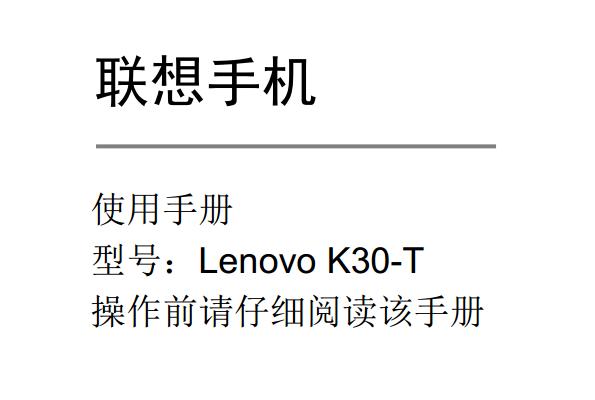 联想Lenovo K30-T采用了5寸屏幕,分辨率为1280x720,搭载1.2GHz主频的四核MTK处理器,1GB运行内存,机身存储空间为8GB ROM,支持SD扩存。主摄像头为800万像素,搭载Android 4.4.4,支持ART模式。下面小编给大家带来的是联想K30-T使用说明书(用户手册),有需要的朋友可以下载联想K30-T说明书查看详细内容。