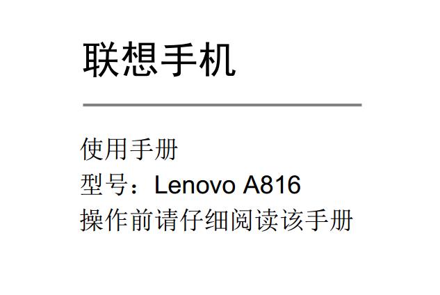 联想a816说明书目录