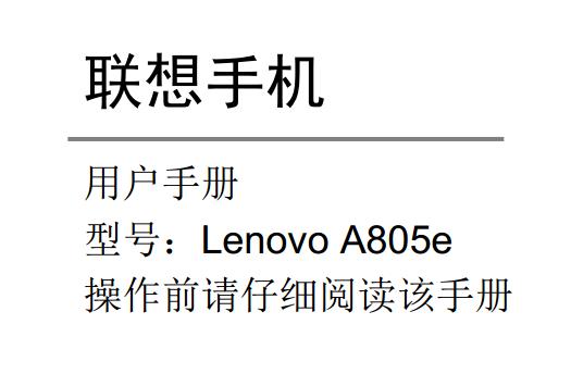 联想Lenovo A805e配置1GB的RAM内存+8GB的ROM内存,采用5.5英寸的TFT多点电容触摸屏,800万像素,LED补光灯,下面给大家带来的是联想a805e使用说明书,有需要的朋友可以下载联想a805e说明书。