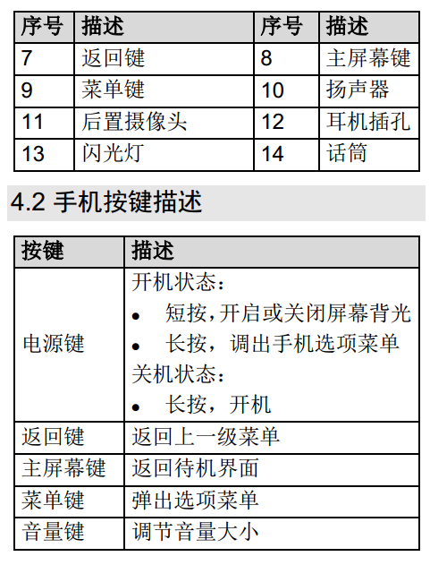 4.2 手机按键描述 ............................ 30