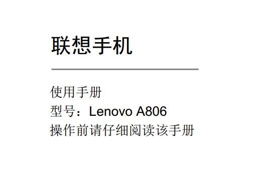 联想黄金斗士A8(A806/联通4G)采用5英寸的IPS电容触摸屏,该屏幕分辨率为1280x720像素,配置2GB的RAM内存+16GB的ROM内存,1300万像素+500万像素前后镜头,下面给大家带来的是联想A806使用说明书,有需要的朋友可以下载联想A806说明书。