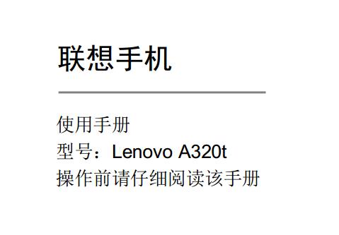 联想Lenovo A320t采用4寸800×480分辨率屏,配置512M的RAM内存+4GB的ROM内存,摄像头为200万像素,下面给大家带来的是联想A320t使用说明书,有需要的朋友可以下载联想A320t说明书。