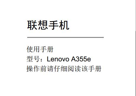 联想Lenovo a355e采用4寸800×480分辨率电容触摸屏,配置512M的RAM内存+4GB的ROM内存,摄像头为30万像素,下面给大家带来的是联想a355e使用说明书,有需要的朋友可以下载联想a355e说明书。