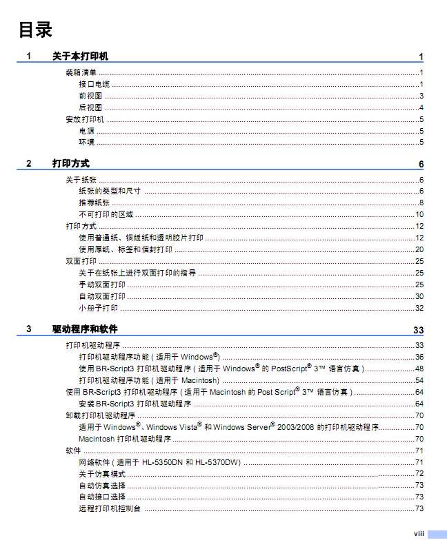 Brother兄弟HL-5370DW激光打印机说明书内容部分图鉴