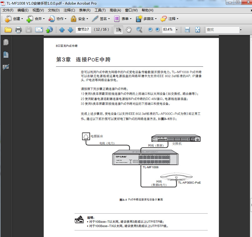 TL-MF1008拥有8个输出端口,支持PoE供电,符合IEEE802.3af标准,兼容符合IEEE802.3af的受电设备,单端口最大供电为15.4W,整机总功率为57W,即插即用,无需配置。以下文档是TL-MF1008安装手册,有需要的朋友可立即下载此文档。