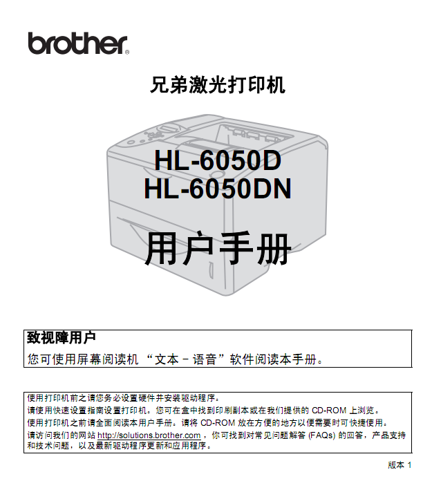 本节内容小编要和大家分享的是Brother兄弟HL-6050DN激光打印机使用手册(pdf格式高清版说明书),有需要的朋友可以进行下载查阅哦!