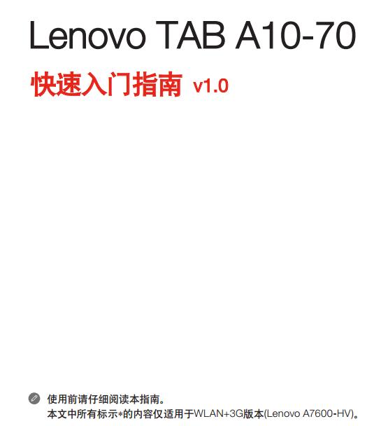 联想Lenovo a7600平板电脑采用10.1英寸的电容式触摸屏,主屏幕1280x800像素,下面给大家带来的是联想a7600使用说明书(Lenovo TAB A10 70),有需要的朋友可以下载联想a7600说明书查看详细内容。