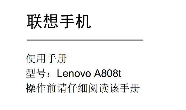 联想Lenovo a808t配置2GB的RAM内存+16GB的ROM内存,采用5英寸HD屏幕,主屏幕1280x720像素,前置500万像素+后置1300万像素的摄像头,下面给大家带来的是联想a808t手机使用说明书(Lenovo A808t使用手册),有需要的朋友可以下载联想a808t说明书。