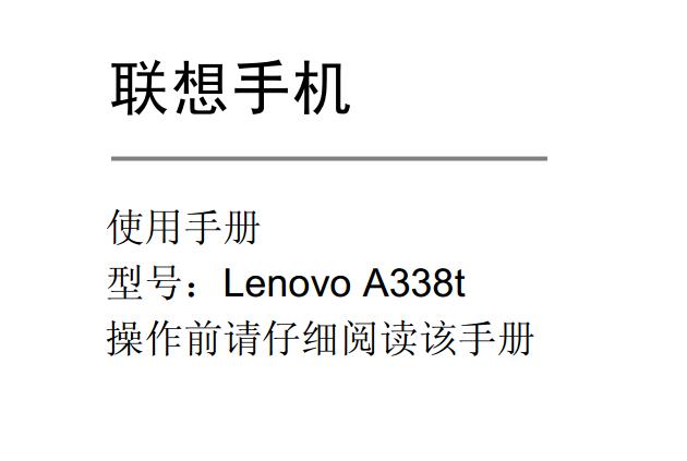 联想Lenovo a338t,采用4.5英寸电容触摸屏,主屏幕854x480像素,前置30万像素+后置500万像素的摄像头,下面给大家带来的是联想a338t手机使用说明书(Lenovo a338t使用手册),有需要的朋友可以下载联想a338t说明书查看详细内容。