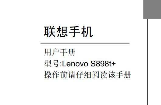 联想Lenovo s898t+采用5.3英寸的IPS多点电容触摸屏,该屏幕分辨率为1280x720像素,前置500万像素+后置1300万像素的摄像头,下面给大家带来的是联想s898t+手机使用说明书(Lenovo s898t+使用手册),有需要的朋友可以下载联想s898t+说明书查看详细内容。