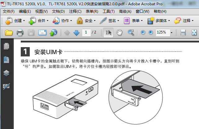 TL-TR761 5200L支持中国电信UIM卡,可以轻松化3G为Wi-Fi,内置5200mAh大容量锂电池,典型应用*下可使用16-26小时,提供1个标准USB接口,支持5V 1A输出规格。以下文档是TL-TR761 5200L快速安装指南,有需要的朋友可立即下载此文档。