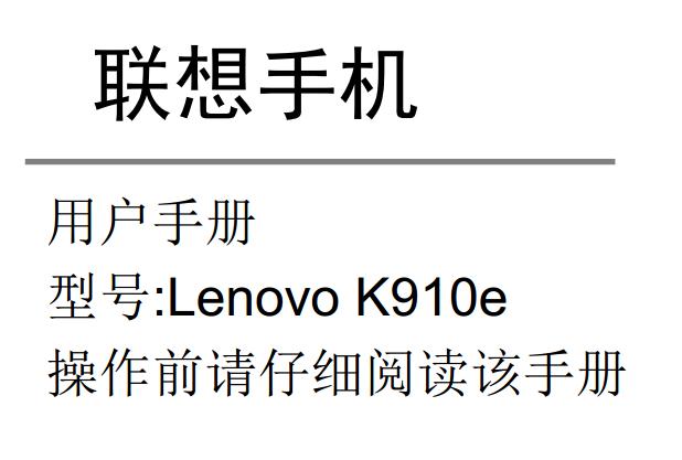 联想Lenovo k910e手机配有5.5英寸FHD全高清IPS触控屏,提供了400+ppi像素密度。内置2.2GHz主频的高通骁龙800四核处理器,拥有2GB内存和16GB存储容量,并支持micro-SD存储卡扩展。下面给大家带来的是联想k910e手机使用说明书,有需要的朋友可以下载联想k910e说明书查看详细内容。