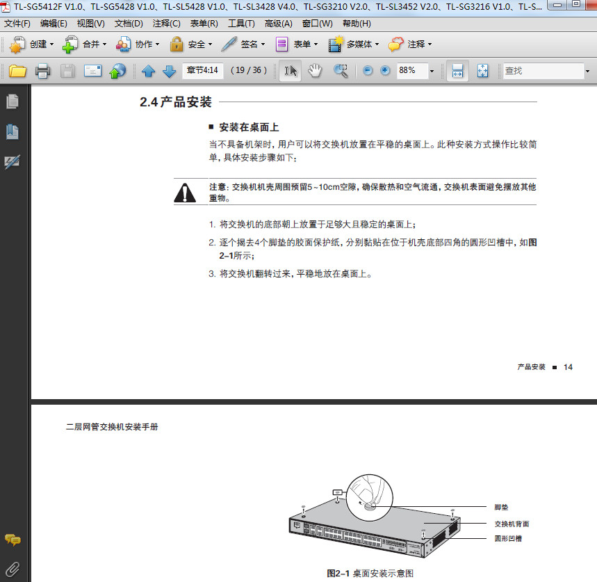 TL-SG5412F(系列)安装在桌面上操作步骤