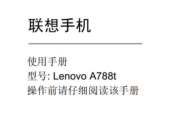 联想Lenovo a788t手机配有5英寸的显示屏,分辨率为854x480像素。前置30万像素+后置800万像素的摄像头。下面给大家带来的是联想a788t手机使用说明书(Lenovo a788t),有需要的朋友可以下载联想a788t说明书查看详细内容。