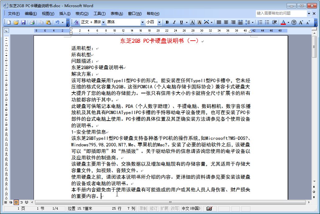 本节内容小编要和大家分享的是Toshiba东芝2GB PC卡硬盘说明书(doc格式),有需要的朋友可以进行下载查阅哦!