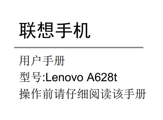 联想Lenovo a628t手机配有5英寸的显示屏,分辨率为854x480像素,双摄像头前置200万+后置500万像素的摄像头。下面给大家带来的是联想a628t手机使用说明书(Lenovo a628t),有需要的朋友可以下载联想a628t说明书查看详细内容。